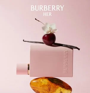 Burberry Her Parfum by Burberry is a Oriental Vanilla fragrance for women. This is a new fragrance. Burberry Her Parfum was launched in 2025. Top notes are: Cherry and Pear; middle notes are: Amber, Whipped Cream, Patchouli and Freesia; base notes are: Vanilla Absolute, Moss and Musk.